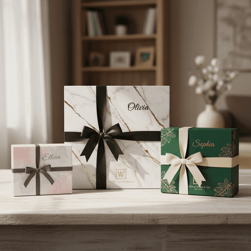 Request a free custom quote from WiseCustomBoxes today for custom personalized gift boxes with premium materials, custom printing, luxury finishes, and optional inserts designed to impress from the very first look.